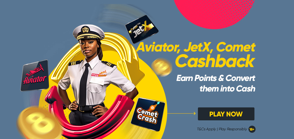Fly high with the Aviator, JetX, and Comet Cashback promotion and turn your gameplay into real rewards! Every real-money bet you place on these games earns you 1 point for every 1 KES wagered. Once you reach the redemption threshold (starting from 2,000 points), you can convert your points into Cash Rewards or Casino Bonuses—the higher your points, the greater your reward. For example, 2,000 points gets you 10 KES in casino bonus or 5 KES in cash, while 1,740,000 points earns a massive 10,000 KES bonus or 5,000 KES cash. Only real-money bets count, and cancelled or bonus wagers don’t qualify. Start spinning, flying, and crashing your way to extra rewards today!