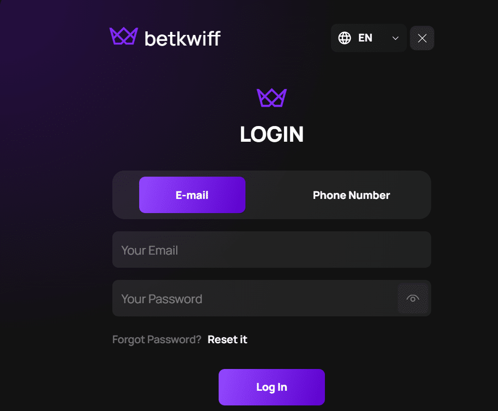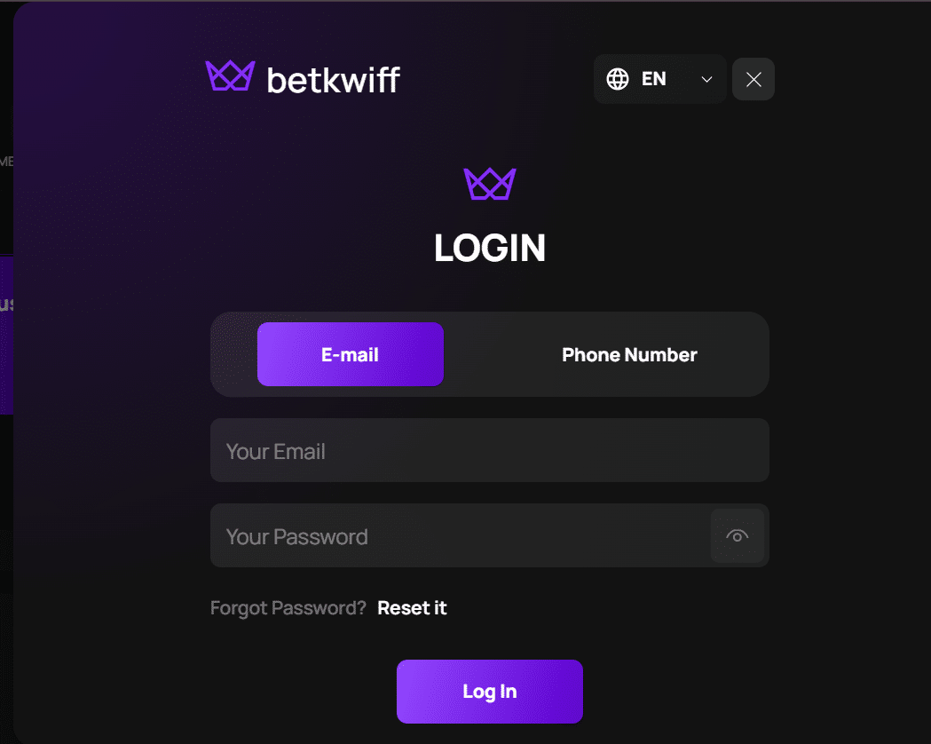 - Log In to Your Account: Begin by visiting the Betkwiff website. Once on the homepage, direct your attention to the top-right corner where you’ll find the “Log In” button.