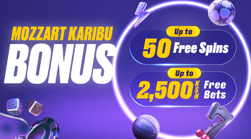 Mozzart Bet Kenya is giving you a 50% deposit bonus in free bets — up to KES 2,500! To qualify, just deposit at least KES 100, and use that money to place multibets with 4 or more games, each with odds of 1.70 or higher.